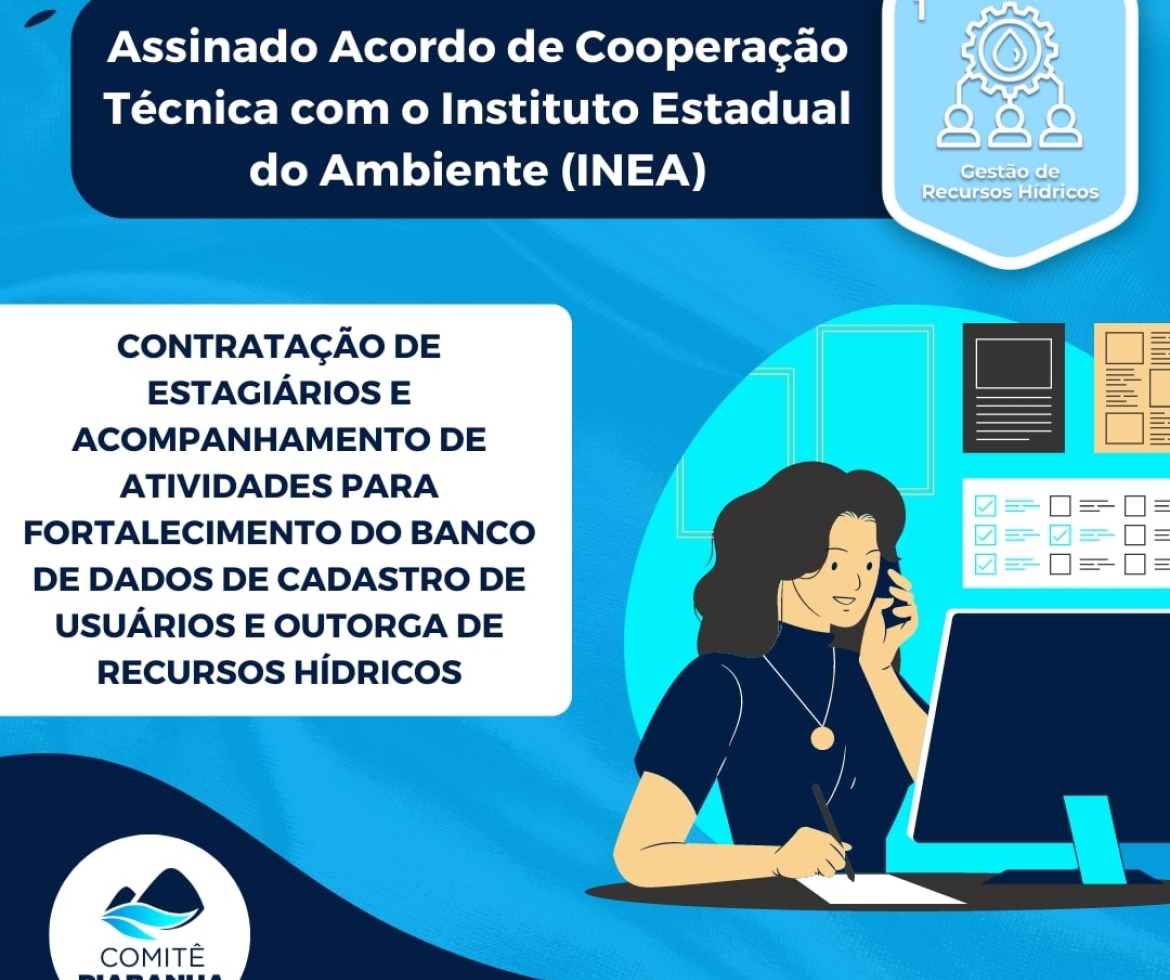 O Comitê Piabanha assinou no último dia 21 um Acordo de Cooperação Técnica (ACT) com o Instituto Estatual do Ambiente (INEA) visando ampliar e aprimorar a qualidade das informações sobre os usos da água bruta da Região Hidrográfica IV do Estado do Rio de Janeiro, área de atuação do Comitê. Foram aportados pelo Comitê Piabanha cerca de R$ 90 mil destinados a contratação de dois estagiários de nível superior. Os contratados irão desenvolver atividades especializadas de consolidação e fortalecimento do banco de dados de Cadastro de Usuários de Recursos Hídricos e Outorgas de Uso de Recursos Hídricos na RH-IV (Piabanha), bem como, migração de dados para o sistema SOUTH.