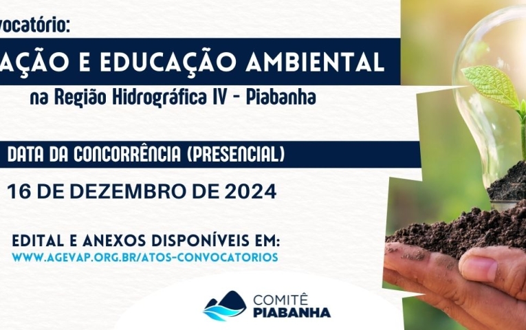 Foi publicado pelo Comitê Piabanha Ato Convocatório para a contratação de empresa especializada para a elaboração e implementação de Projeto de Mobilização e Educação Ambiental na Região Hidrográfica IV, área de atuação do Comitê. O valor estimado para este Ato Convocatório (Concorrência nº 20/2024) é de até R$ 334.843,00. Pode participar, qualquer pessoa jurídica interessada, desde que cumpram as exigências e descrições do edital.