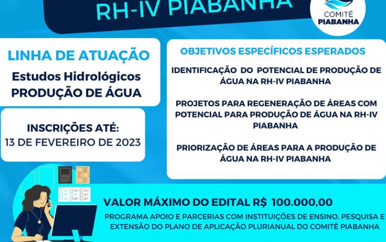 Estão abertas até o dia 13 de fevereiro de 2023 as inscrições para o Edital PROPESQUISA. Esta é uma iniciativa do Comitê Piabanha, que visa incentivar a pesquisa técnica e científica de estudantes matriculados em cursos de graduação ou pós-graduação devidamente aprovados pelo Ministério da Educação.